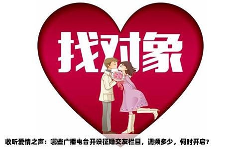 在現(xiàn)代社會,廣播電臺的征婚交友欄目已經(jīng)成為許多單身人士尋找另一半的重要途徑之一。下面就為大家介紹哪幾個廣播電臺有這樣的欄目,以及它們的調(diào)頻頻率和開播時間。廣播電臺征婚交友欄目介紹1. 電臺A 調(diào)頻:XXX MHz 時間:每晚XX點至XX點 以真實故事和互動問答為主,為單身聽眾搭建相識相知的平臺...