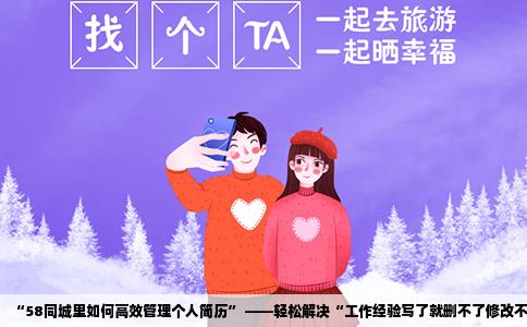 隨著網(wǎng)絡(luò)求職的普及,許多求職者都會(huì)選擇在58同城等招聘平臺(tái)發(fā)布個(gè)人簡(jiǎn)歷。在編寫(xiě)和發(fā)布簡(jiǎn)歷的過(guò)程中,常常會(huì)遇到一些問(wèn)題,如“工作經(jīng)驗(yàn)寫(xiě)了就刪不了修改不了”等。本文將針對(duì)這一問(wèn)題,提供解決方案和操作建議。問(wèn)題概述在使用58同城發(fā)布個(gè)人簡(jiǎn)歷時(shí),有些用戶反饋在填寫(xiě)或編輯簡(jiǎn)歷過(guò)程中,一旦輸入了工作經(jīng)驗(yàn)等信息并...